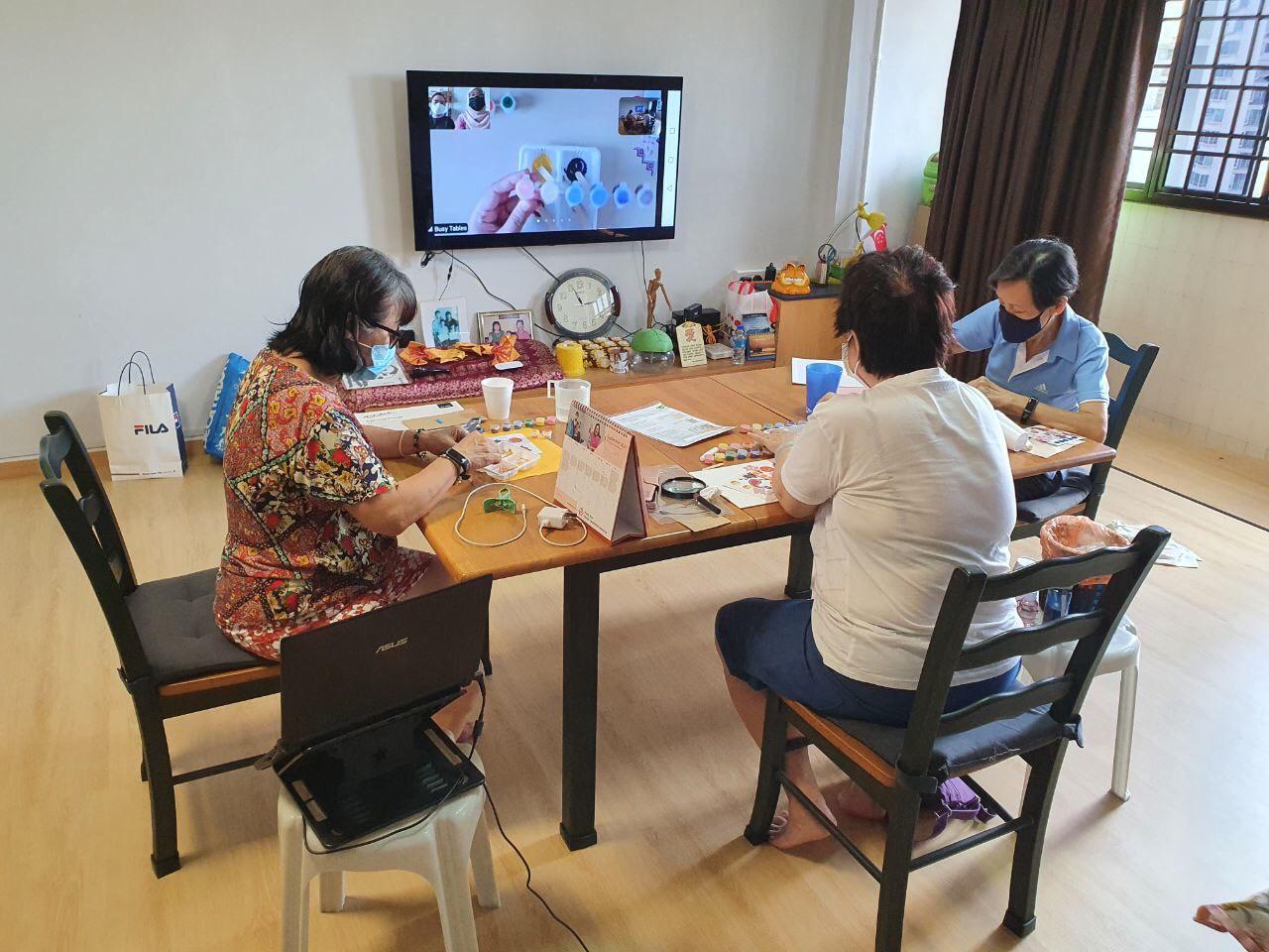 Helping seniors use their SingapoRediscovers Vouchers is just one way C3 engages with seniors in these stay-home times. Other activities include games, craftwork – even growing mushrooms together! You can find a picture gallery of how C3 continued to engage our seniors during Phase 2 Heightened Alert below: